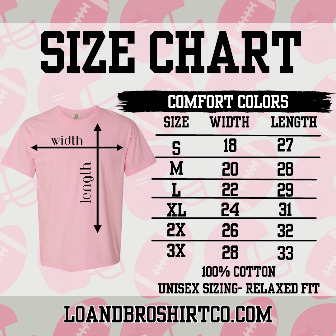 Printed on light green (no youth), crimson, or seafoam Comfort Colors tees.